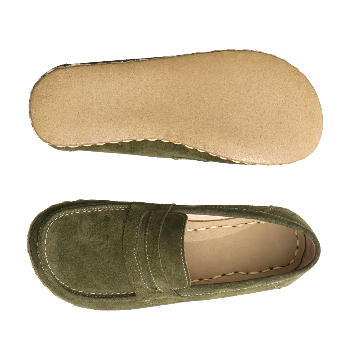 El İmalatı Kadın Barefoot Penny Loafer – Yeşil Süet Deri | Doğal Konfor ve Şık Tasarım
