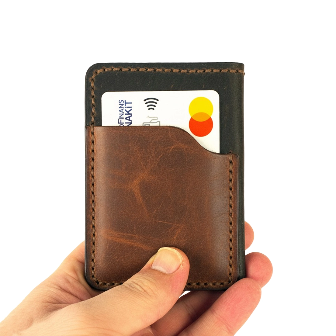 This card holder is fully handmade in line with BODHI’s conscious production philosophy. The crazy leather used in its construction naturally evolves with use, creating a unique patina that reflects your personal journey. The combination of two earthy tones adds a subtle yet distinctive character to the design.