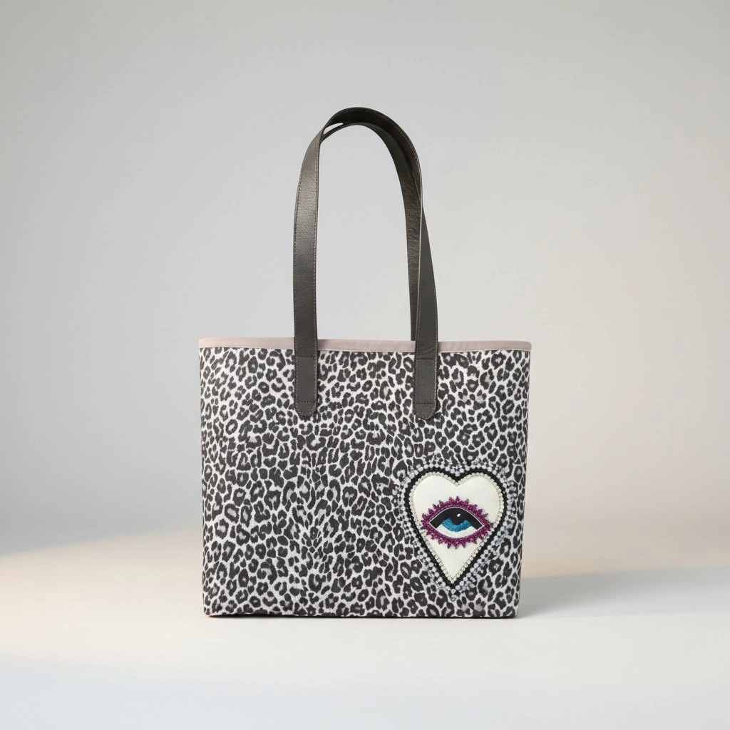 Gray Leopard Print Tote Bag with Crystal Eye Embellishment – Style Virgo