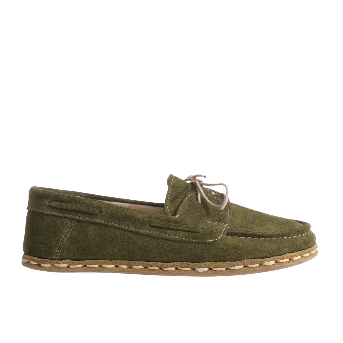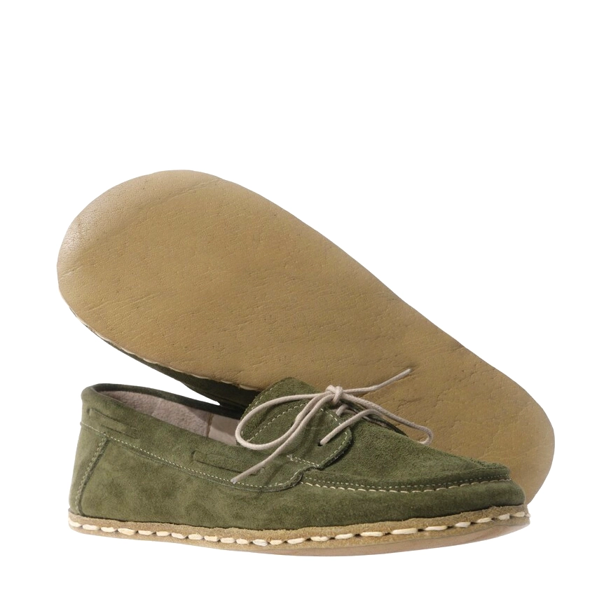 Women’s Green Suede Leather Barefoot Loafer – Grounding Sole