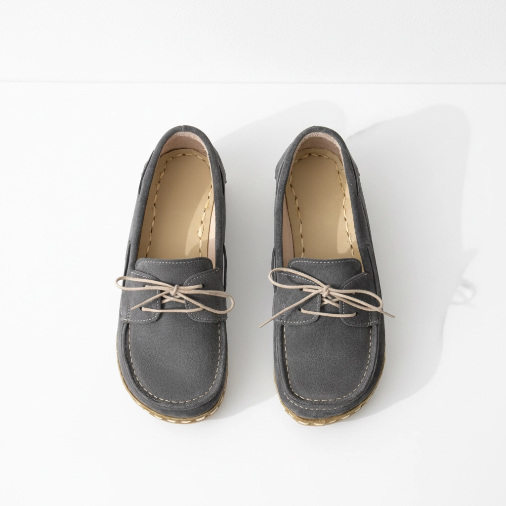 Women’s Barefoot Grey Suede Moccasins – Grounding Sole