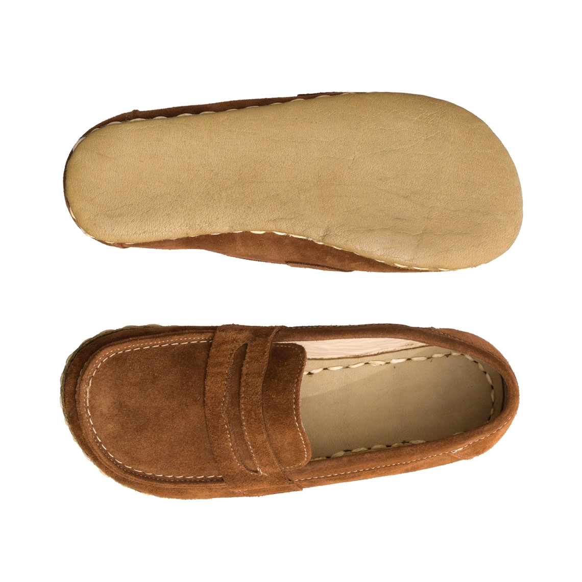 Women’s Barefoot Penny Loafer – Handmade Brown Suede Leather