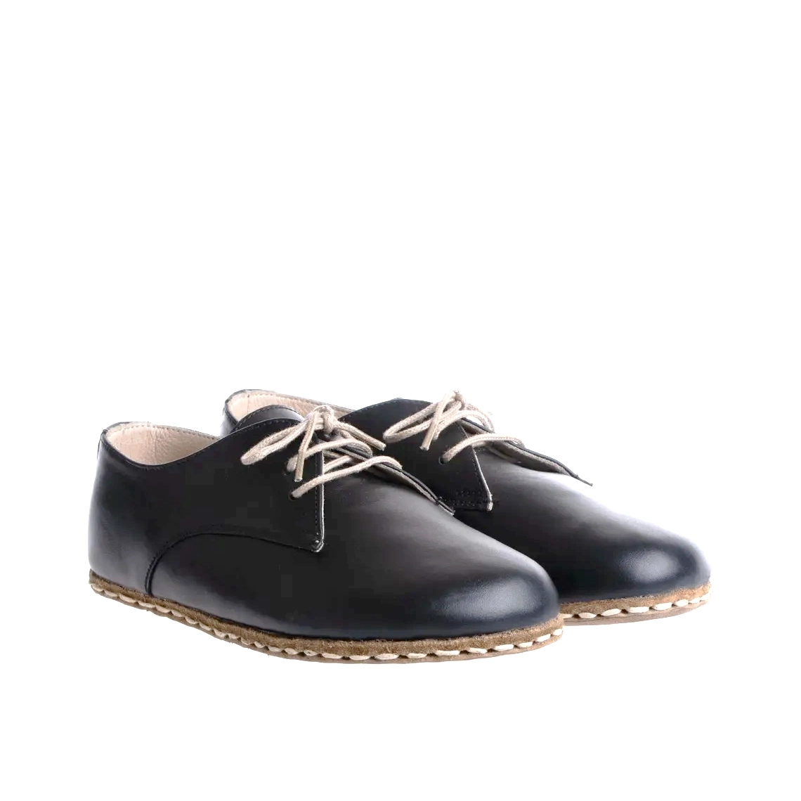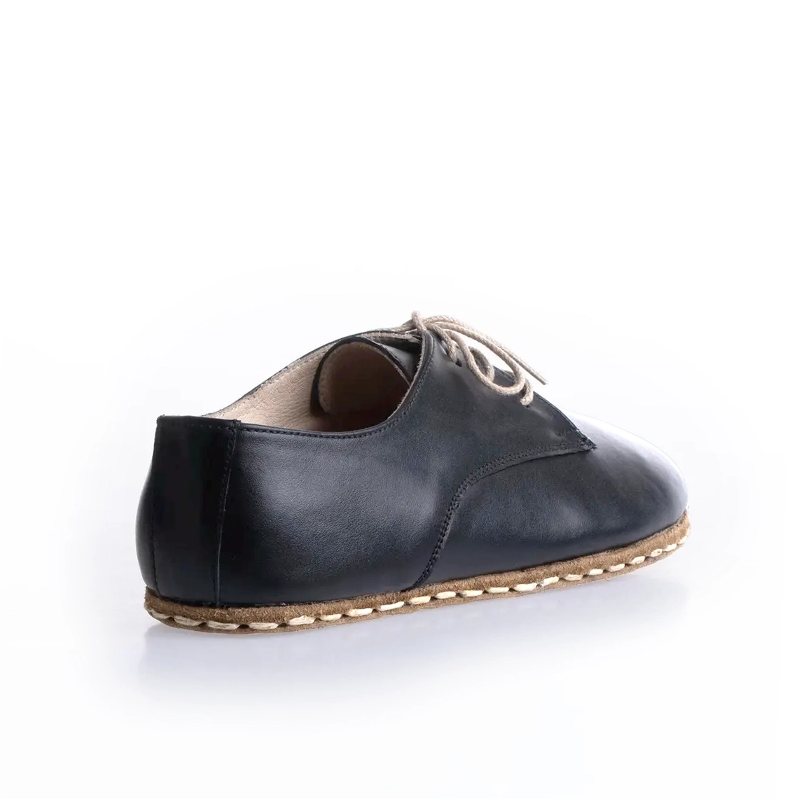 Women’s Black Handmade Genuine Leather Barefoot Oxford Shoes – Grounding Buffalo Leather Sole