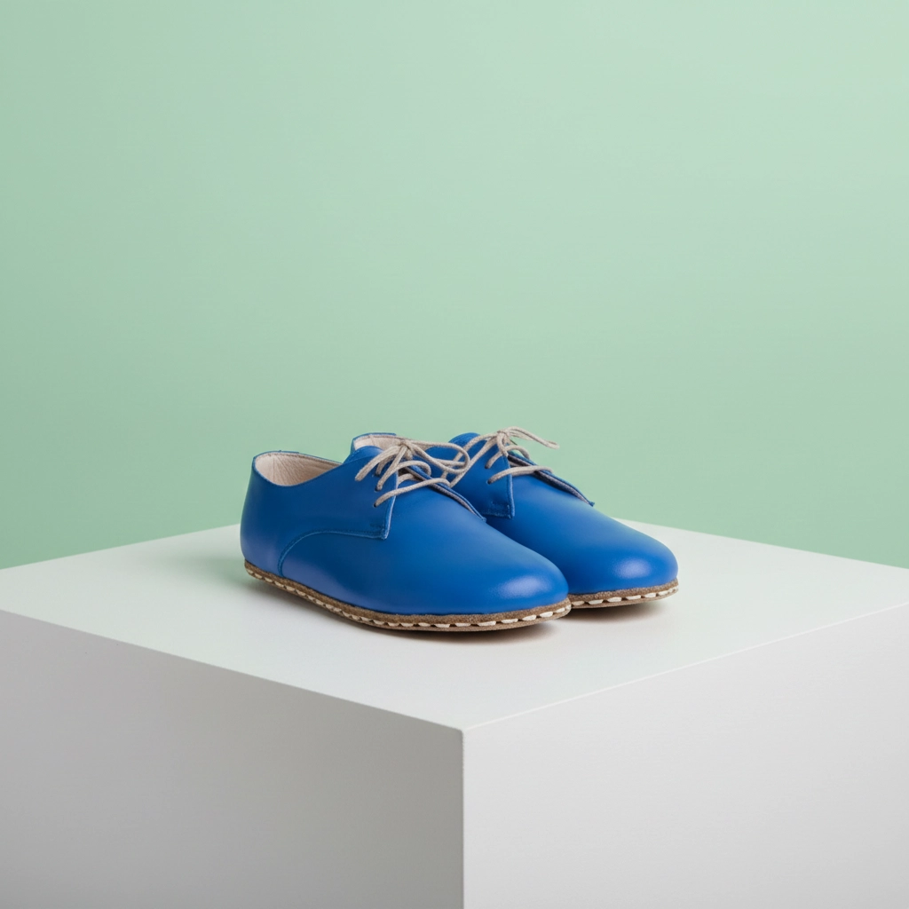 Pair your blue barefoot Oxford shoes with tailored trousers, jeans, skirts, or minimalist dresses to achieve a look that is both effortless and sophisticated.