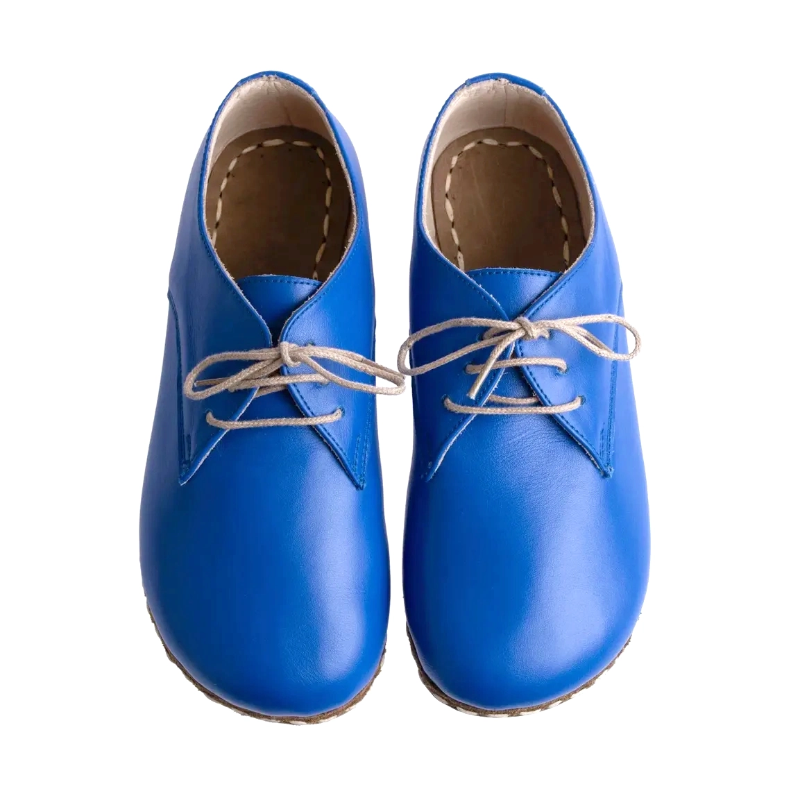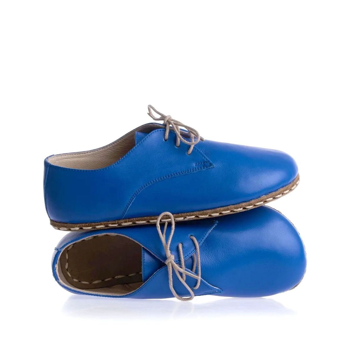 Women’s Blue Handmade Genuine Leather Barefoot Oxford Shoes – Grounding Buffalo Leather Sole