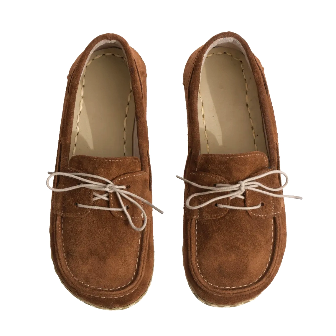 Women’s Handmade Barefoot Brown Genuine Suede Leather Moccasins – Grounding Leather Sole