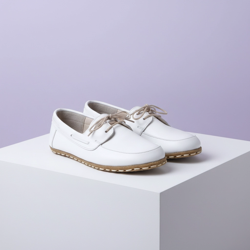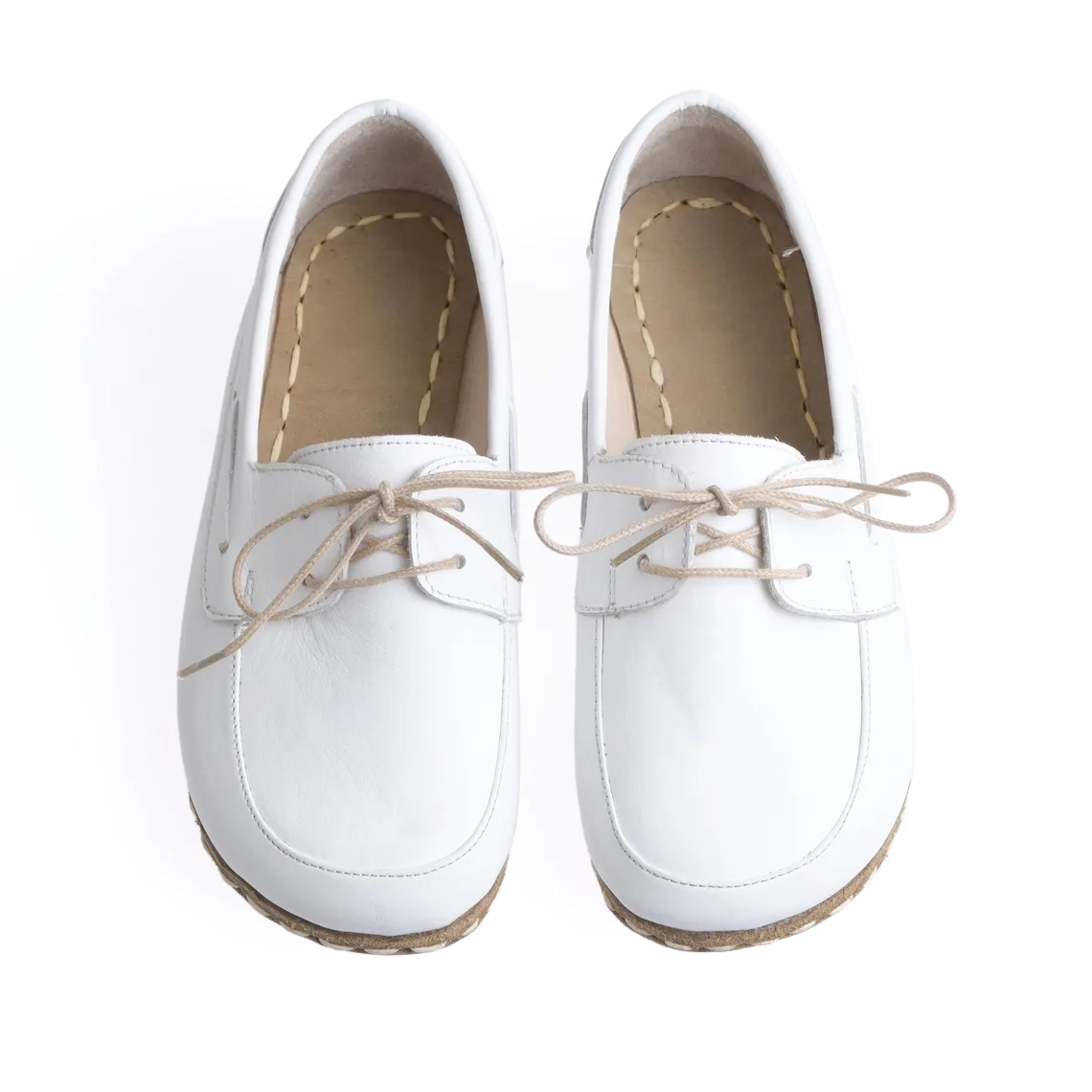 Women’s Lace-Up Grounded Barefoot Moccasin – White