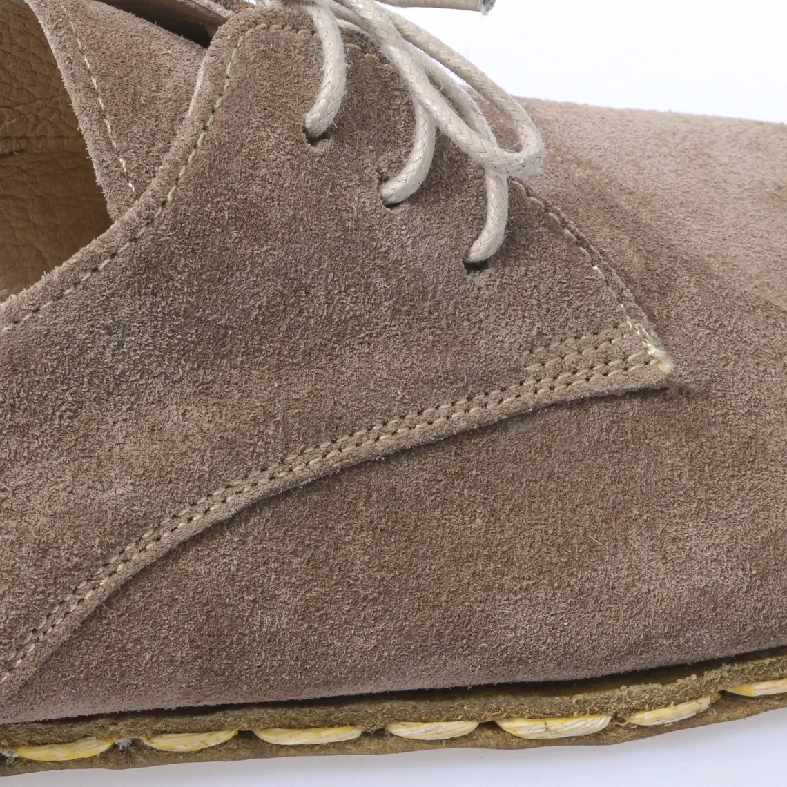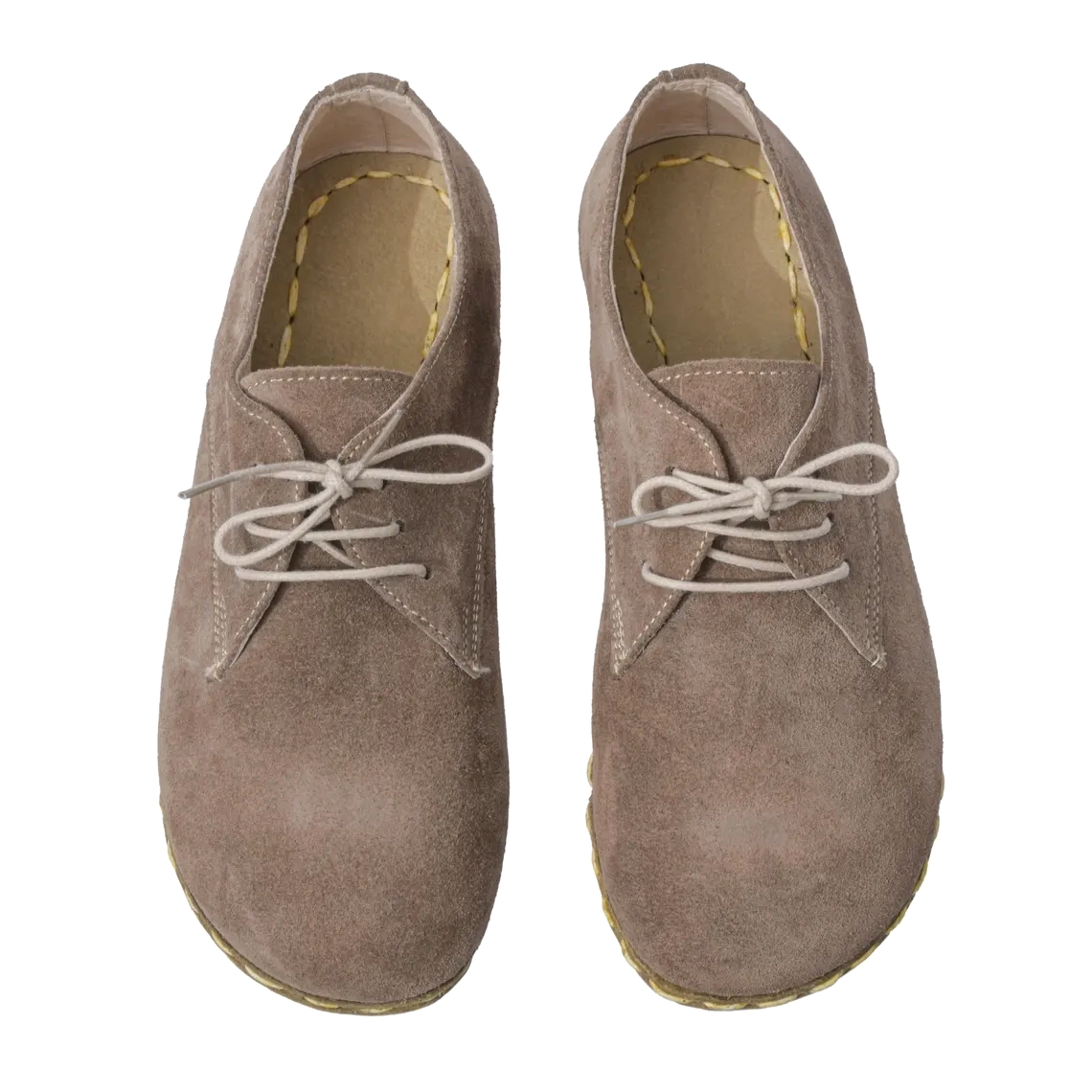 Kadın el yapımı boz kahverengi süet deri minimalist barefoot Oxford ayakkabı, modern hayatın hızına uyum sağlarken doğallıktan vazgeçmek istemeyen kadınlar için üretildi. Geleneksel ustalıkla elde hazırlanan bu özel model, ayağınızın doğal hareketine saygı duyan minimalist yapısıyla sizi gerçek yürüyüş deneyimiyle buluşturur.
