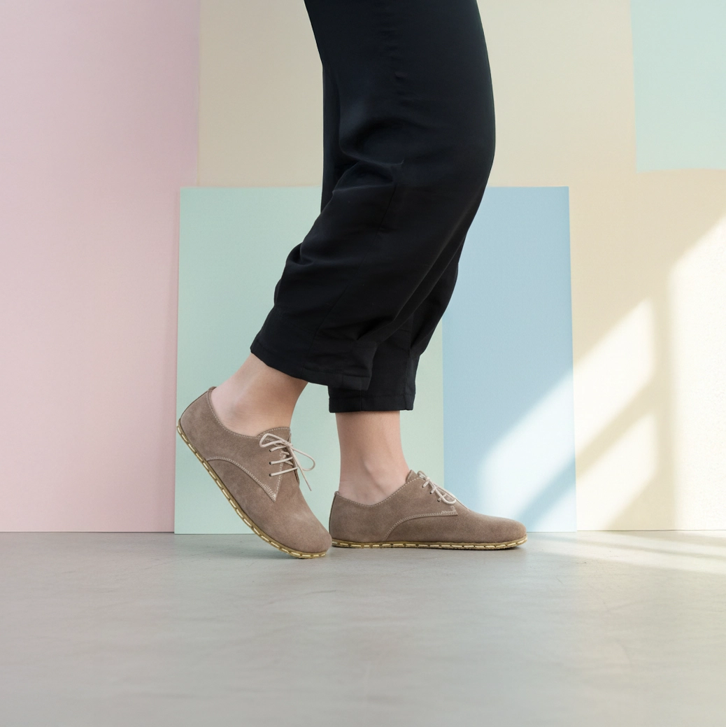 Kadın Boz Süet Deri Barefoot Oxford Ayakkabı – Topraklamalı