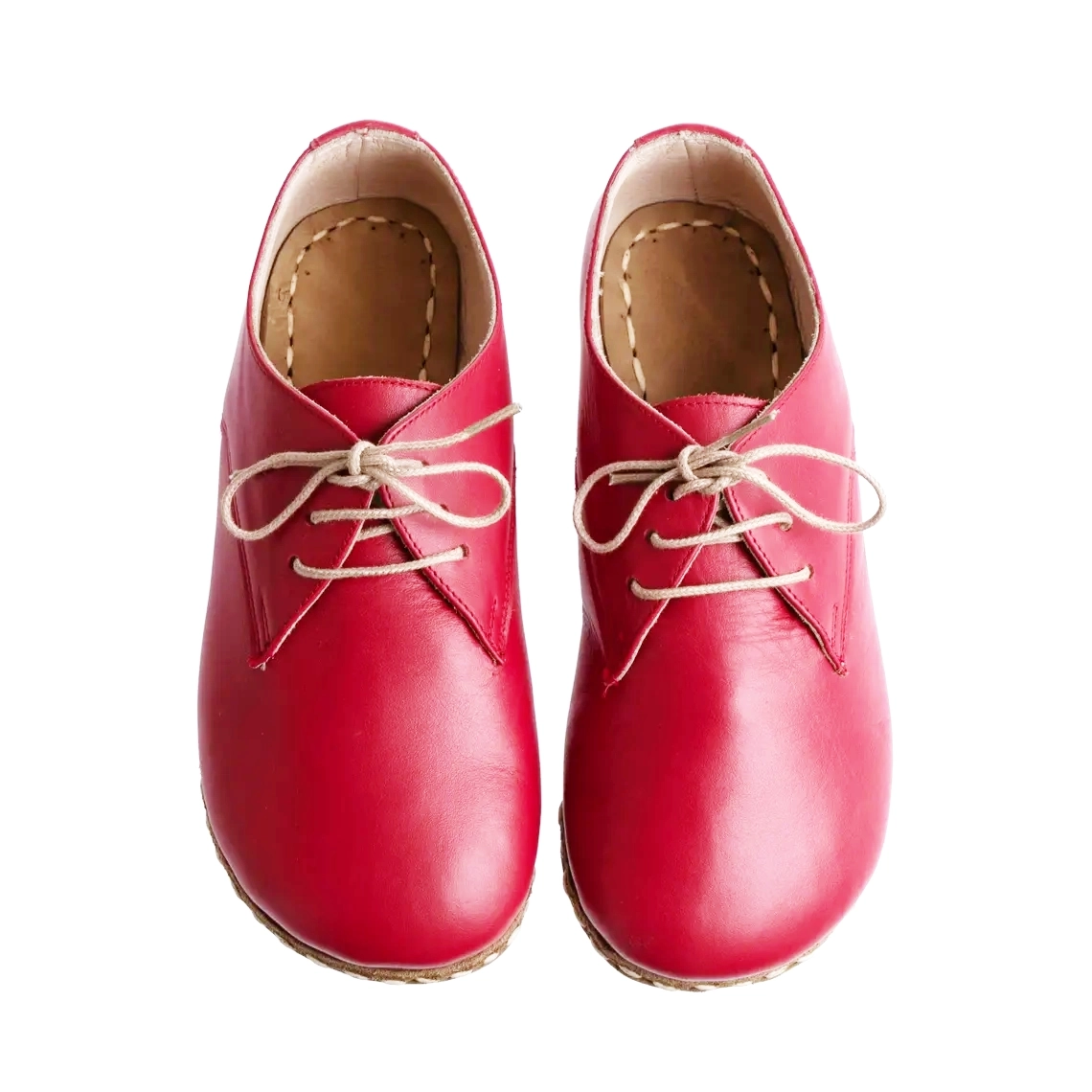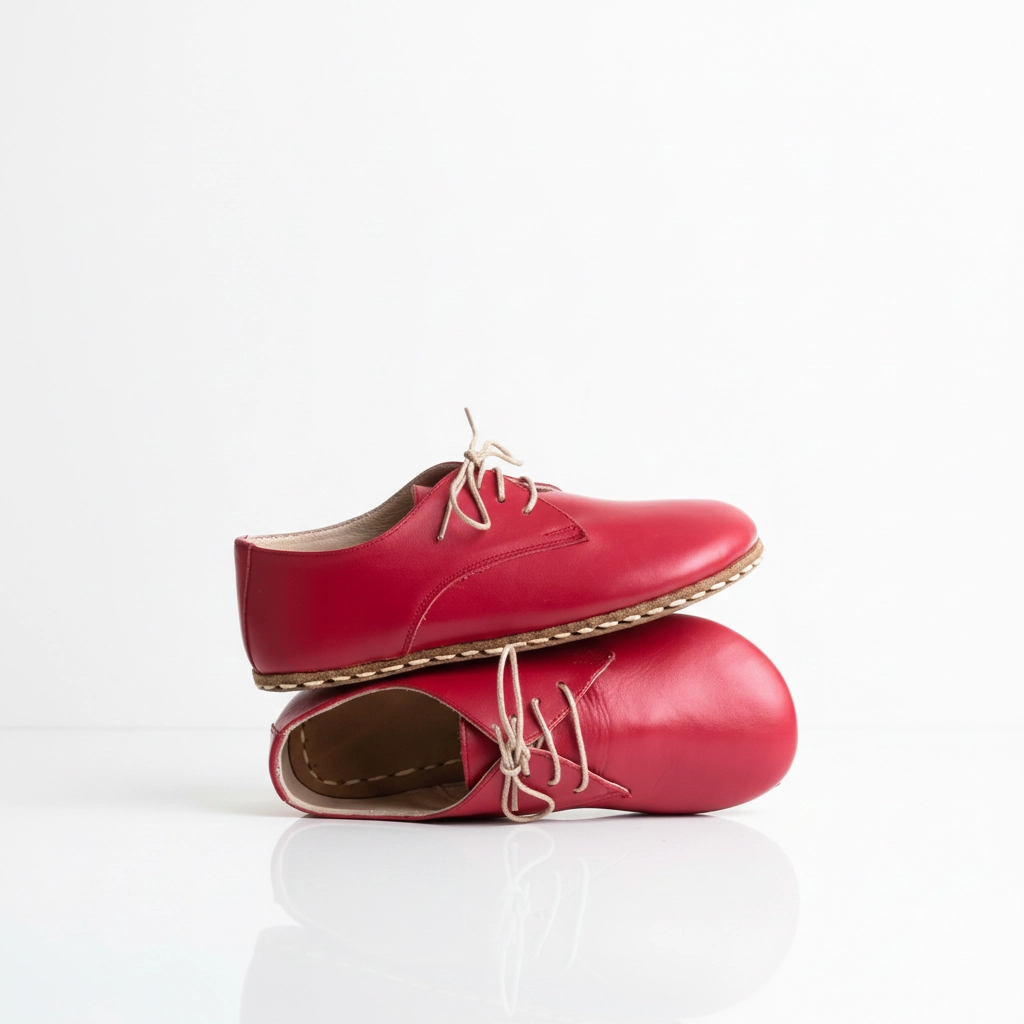 Doğal yürüyüş konforunu zarif bir stil ile buluşturan Kadın Kırmızı Rengi El İmalatı Gerçek Deri Barefoot Oxford Ayakkabı, minimalist tasarım anlayışıyla üretilmiştir.