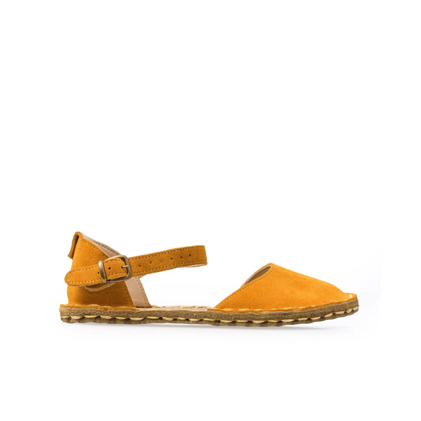 Kadın Sarı Hakiki Süet Deri Barefoot Sandalet – Topraklamalı