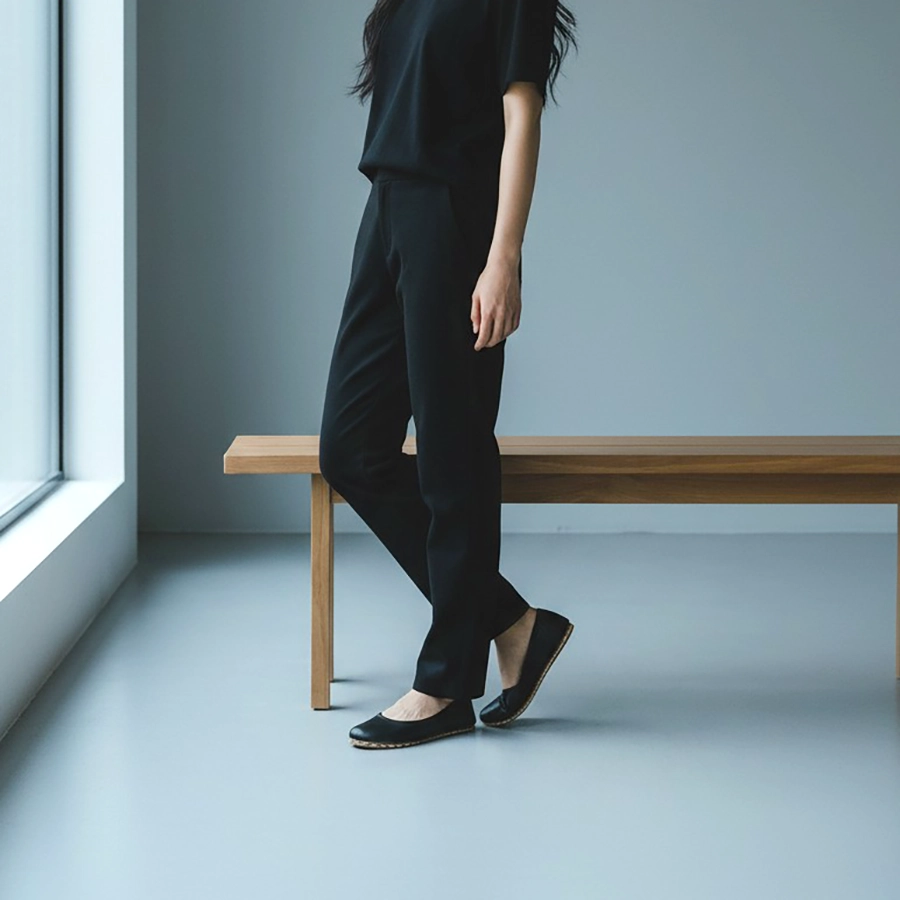 Şıklığın simgesi siyah, şimdi doğal yürüyüş hissiyle buluşuyor. Siyah hakiki deri barefoot kadın babet, ayağın doğal anatomisini destekleyen minimalist tasarımı ve topraklamalı bakır perçinli tabanı ile hem konfor hem de özgün bir deneyim sunar.